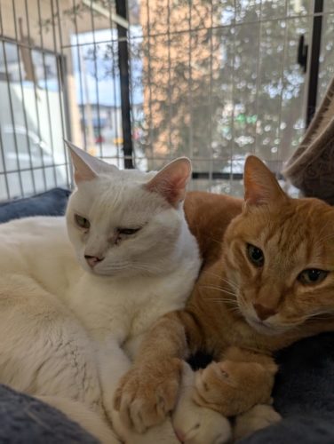 そんなオリーブの木には全く興味のない二匹。今日も二匹、仲良くくっついてお昼寝です。